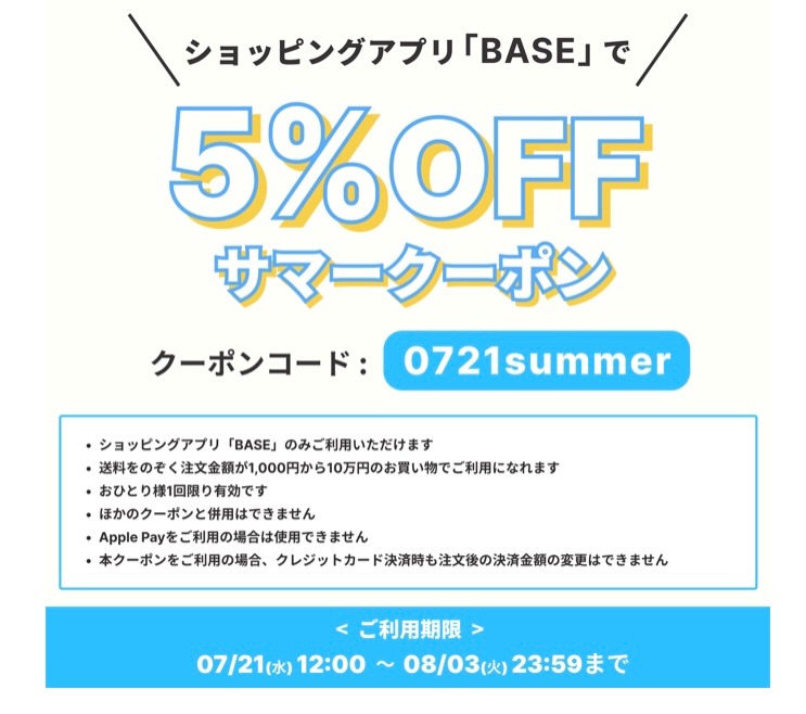 5%OFFクーポン本日8/3(火)23:59までです⭐️この機会にぜひご利用下さい✨